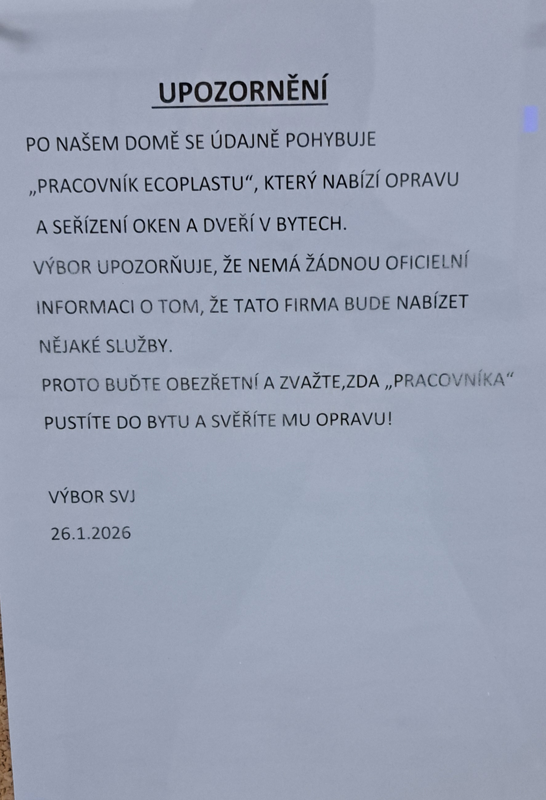V kanceláři výboru SVJ si můžete vyzvednout